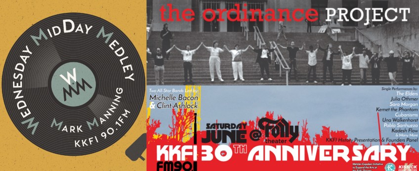 WMM062018 Published June 18, 2018 at 3600 × 1472 in Wednesday MidDay Medley features The Ordinance Project, Out Here Now & KKFI’s 30th!