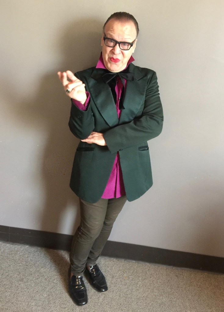 IMG_1970 Published November 5, 2018 at 2118 × 2956 in WMM Playlist from October 31, 2018 Michael McQuary as Bette Davis on the October 31, 2018 edition of Wednesday MidDay Medley on 90.1 FM KKFI. (Photo by Mark Manning)