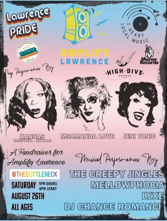 We are talking with Jocelyn Olivia Nixon, singer, songwriter, guitarist & keyboard player for The Creepy Jingles, joins us to share details about a Fundraiser for Amplify Lawrence at The Bottleneck, Saturday, August 26 at 6:00 PM, with The Creepy Jingles, Mellow-Phobia, Lyxe, DJ Romance, and drag performances by Kansas Campbell-Mykals, Ms. Amanda Love, and Jeni Tonic. The event is co-sponsored by Amplify Lawrence, Lawrence Pride, I Heart Local Music, KJHK 90.7 Lawrence, Manor Records, and High Dive Records. More info at: http://www.amplifylawrence.com