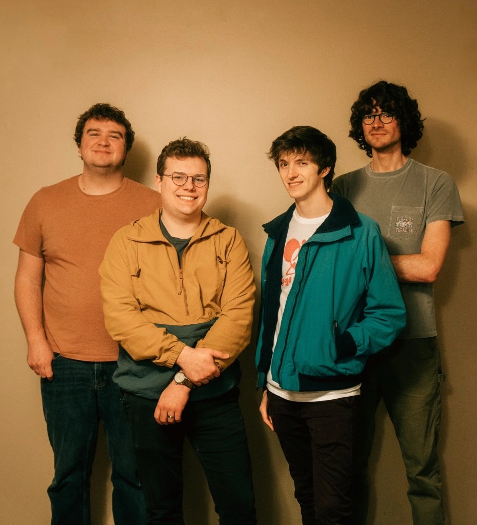 [Eggs on Mars, a four-piece soft psych pop band from KCMO. Brad Smith on guitar/lead vocals/keys; Mason Potter on drums/percussion/backing vocals; Doug Bybee on bass/keys/backing vocals; and Joel Stratton on keys/backing vocals; with Austin Smith on additional guitars; Sam Smith on backing vocals; and Rodd Fenton on backing vocals/hand claps. Recorded/Engineered/Mixed by Rodd Fenton. Mastered by Josh Johnson. Recorded 2023 at Solstice Audio. Cover painting by Shannon Brouk. Photography and album layout by Doug Bybee. More info at: http://www.eggsonmars.bandcamp.com] [Eggs On Mars played Manor Fest 5 in Lawrence on Friday, May 19, at 10;00 PM at Replay Lounge, 946 Massachusetts St., Lawrence, KS with Parry, Saving Miles Lemon, and Scabb.]