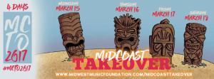 The final MidCoast Takeover 2017 Fundraiser is Saturday, March 11, 8:00 pm, at The Brick, 1727 McGee, Kansas City, MO, featuring Not A Planet, Emmaline Twist, Jake Wells, and The Invisible World. More information at http://www.midwetmusicfoundation.org