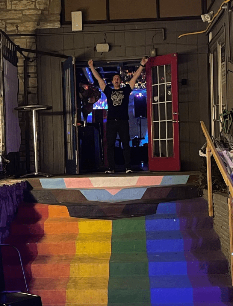 Mitzi writes: I actually didn’t join AA until last December, having already white-knuckled it for 29 months. My addictive tendencies, while not succumbing to alcohol, were manifesting in other ways that were of no help at all to my mental health & family life. At the urgent behest of my wife & father, I finally sought out a queer group (which I didn’t think existed in town; BIG thanks to Annie Thrax for the tip-off 😘) that met on Sunday nights, in the backroom of the very same bar where I’d started my heaviest drinking by that point, way back in the summer of 2014. The group was a revelation.